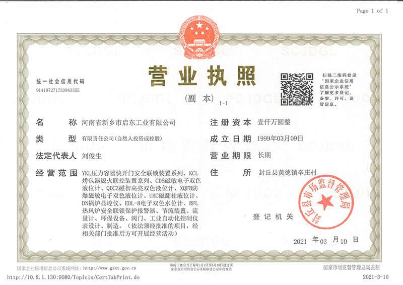 河南省新鄉(xiāng)市啟東工業(yè)有限公司始建于1987年,是專注研發(fā)、生產(chǎn)自動化儀器儀表(主要與壓力容器、鍋爐等容器配套使用)的廠家。主要產(chǎn)品有液位計(磁敏雙色型、磁翻柱型等)系列、烤包器熄火聯(lián)控裝置系列、壓力容器快開門安全聯(lián)鎖保護裝置系列、鍋爐報警器系列。二十多年來,公司產(chǎn)品暢銷國內(nèi)并遠銷俄羅斯、蒙古與東南亞,深得廣大用戶的信賴和好評。我們多年來致力于自動化儀器儀表的研制生產(chǎn),公司現(xiàn)具有完善的生產(chǎn)、試驗、檢測手段和設(shè)備??萍紕?chuàng)新、誠信服務,是我們不變的經(jīng)營理念,我們將以強有力的技術(shù)支持及售后竭誠為客戶提供良好的服務?! ?012年我公司成功研發(fā)了KCL系列烤包器熄火聯(lián)控裝置,并于2013年2月2日榮獲中華人民共和國國家知識產(chǎn)權(quán)局辦法的《實用新型**證書》<**號:2021202257735>該產(chǎn)品廣泛應用于唐鋼等大型鋼鐵企業(yè),為烤包器安全作業(yè)提供了有力的保障。  2002年我公司成功研發(fā)磁敏電子雙色液位計獨特的高亮度LED紅綠雙色顯示,獲得了專家的首肯和用戶的一致好評。在此基礎(chǔ)上我公司研發(fā)人員十年磨一劍,致力于XQFB-1防爆型磁敏雙色液位計的研發(fā),于2013年12月27日由國家防爆電器產(chǎn)品質(zhì)量監(jiān)督檢驗中心檢驗合格并頒發(fā)防爆合格證書<編號:cnex19.0883>。該產(chǎn)品性能得到了充分的發(fā)揮,廣泛應用于含有Ⅱ類A·B級T1-T4組可燃氣體或蒸汽與空氣混合形成的爆炸性混合物的0區(qū)、1區(qū)危險場所。連接用戶DCS或PLC系統(tǒng)實現(xiàn)遠距離集中顯示和控制,從而實現(xiàn)節(jié)能、數(shù)字化管理。為用戶增加了一定的經(jīng)濟效益和社會效益,。2014年公司成功申請了夢潤儀表的logo,新的品牌新的形象,夢潤儀表是啟東的LOGO, 歡迎新老用戶前來洽談合作?! ∥覀円蝗缂韧刈⒅乜蒲械耐度耄瑧{借產(chǎn)品的不斷更新、加大科技含量,進一步拓展市場。我們相信品質(zhì)成就未來,以過硬質(zhì)量、優(yōu)惠價格、完善的售后服務熱忱歡迎廣大客戶來我司視察指導、洽談業(yè)務;精誠合作,共創(chuàng)輝煌!